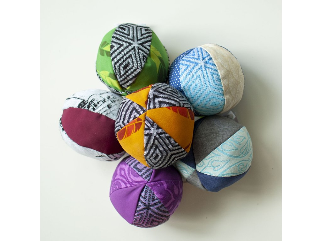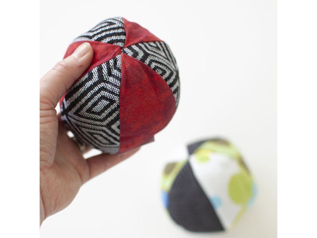 Látkový didaktický jehlan pro nejmenší. Obsahuje prvky na kousání i rozvoj jemné motoriky.