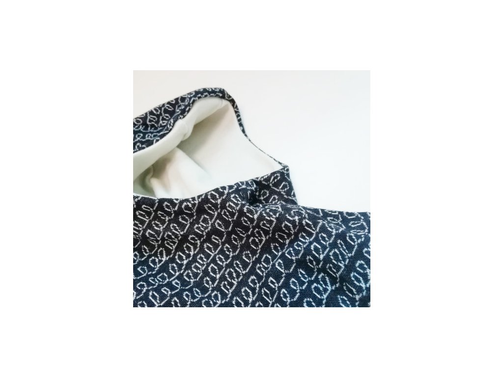 Materiál: žakár s černobílým vzorem a béžové merino (vlna)