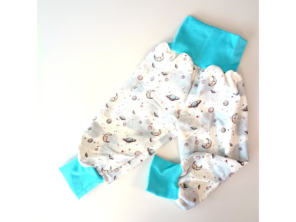 Rostoucí typ - díky dlouhým nápletům v pase a na nohavicích vydrží dítěti klidně 2-3 velikosti.
