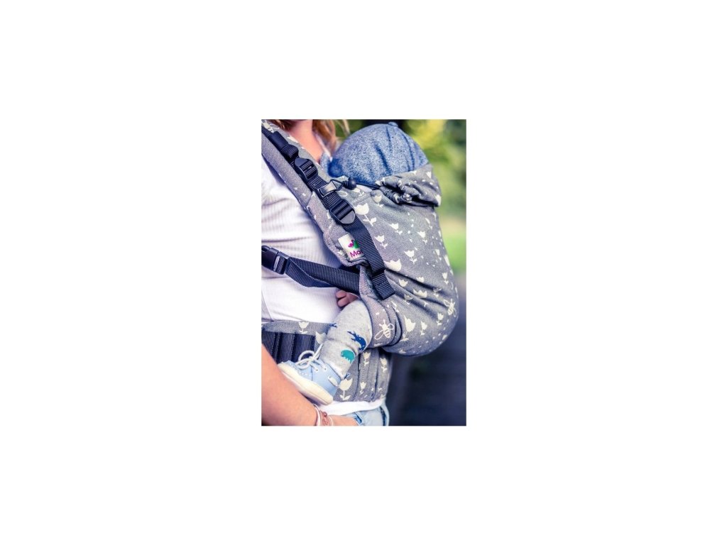 - ověřené ergonomické nošení v ortopedicky správné M poloze, příznivé pro vývoj kyčlí a páteře dítěte